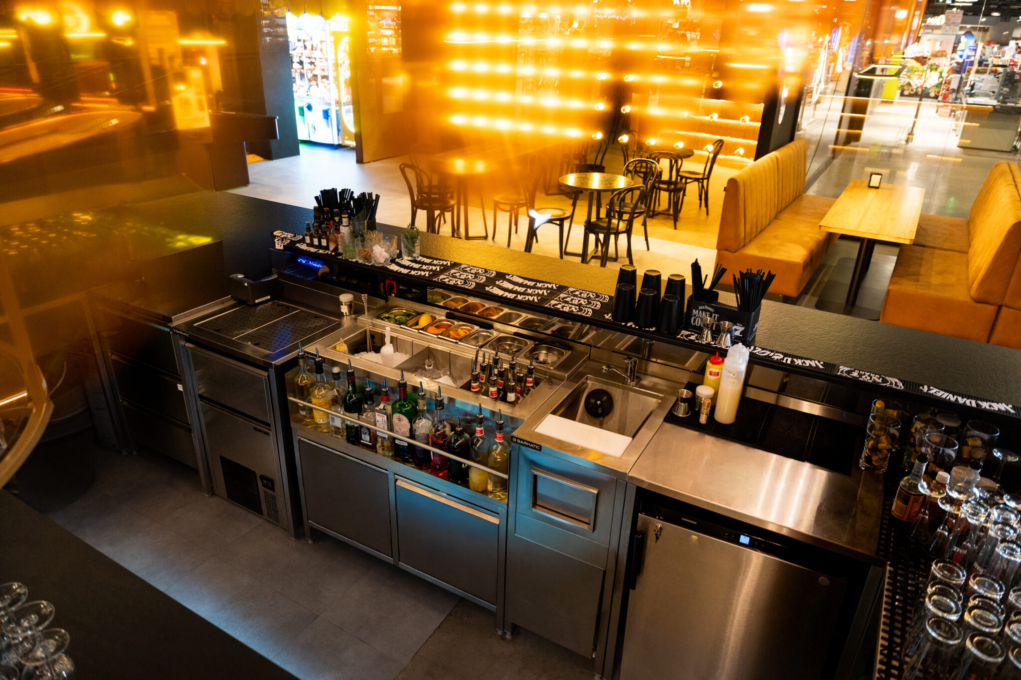 The venue required a back-of-house setup capable of handling high guest turnover and work that relies on speed and precision. Efficient access to ice, chilled ingredients, and glassware was essential, along with well-designed workstations for bartenders. Equally important was organizing the space to allow multiple staff members to work simultaneously without interference, while implementing solutions that minimize downtime and support the highest hygiene standards.
